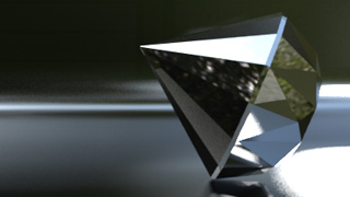 This is a standard Lightwave render with just 32 samples, reflection blur is only applied to the background surface, not to the metal diamond